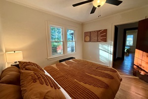 This fully furnished ~1,500 sq ft, single-level home offers 2 plush queen bedrooms and 2 updated bathrooms, giving everyone room to spread out and relax. Styled in a serene Japandi-inspired aesthetic, the space combines warm wood tones, soft neutrals, and clean lines to create a peaceful, elevated atmosphere. Beautiful archways connect the living, dining, and kitchen areas, while large windows and glass doors fill the home with natural light.